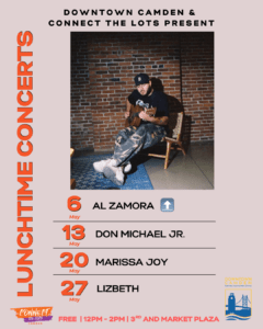 Come out for free live concerts at Roosevelt Plaza Park (outside Camden City Hall) every Tuesday in May presented by Camden Special Services District and Connect the Lots/Camden Community Partnership!